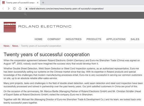 德國(guó)羅蘭在其官網上(shàng)發布官方新聞,現(≠•✔§xiàn)我司轉載如(rú)下(xià)。