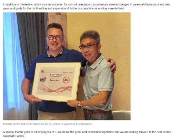 我們與β"✔Michael Xie先生(shēng)(聯歐✘£ ≈公司總經理(lǐ))及其團隊,共同回顧了(↑™™>le)過去(qù)輝煌的(de)20年(nián)。